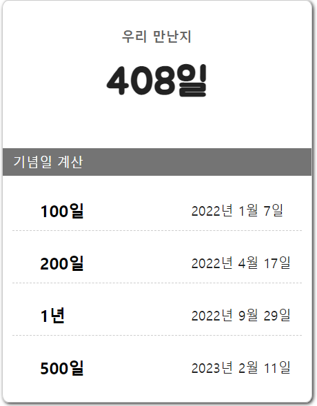마찬가지 방식으로 100일, 200일, 일주년, 500일을 계산하였다.