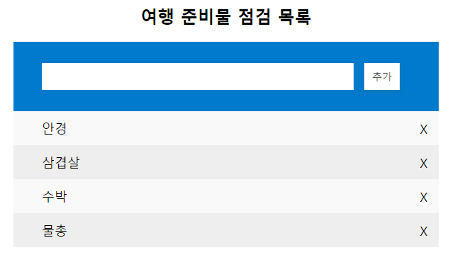 지금까지 Array 객체와 그 대표적인 함수들의 기능에 대해 알아보았다. 이제 이를 활용하여 여행 준비물 점검 프로그램을 만들어 보자.