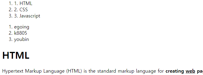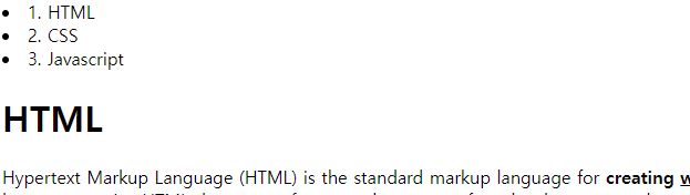 다른 부모 태그인 <ol> 을 사용하여 숫자, 즉 순서가 있는 리스트로 만들 수 있다. 아래와 같은 코드를 실행시켜 보았다.