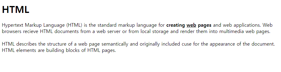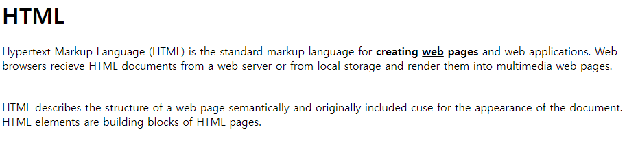 <p> 를 사용할 경우 단락을 넓게 띄우지 못한다는 단점이 존재하지만, CSS를 이용해 이를 구현할 수 있다.