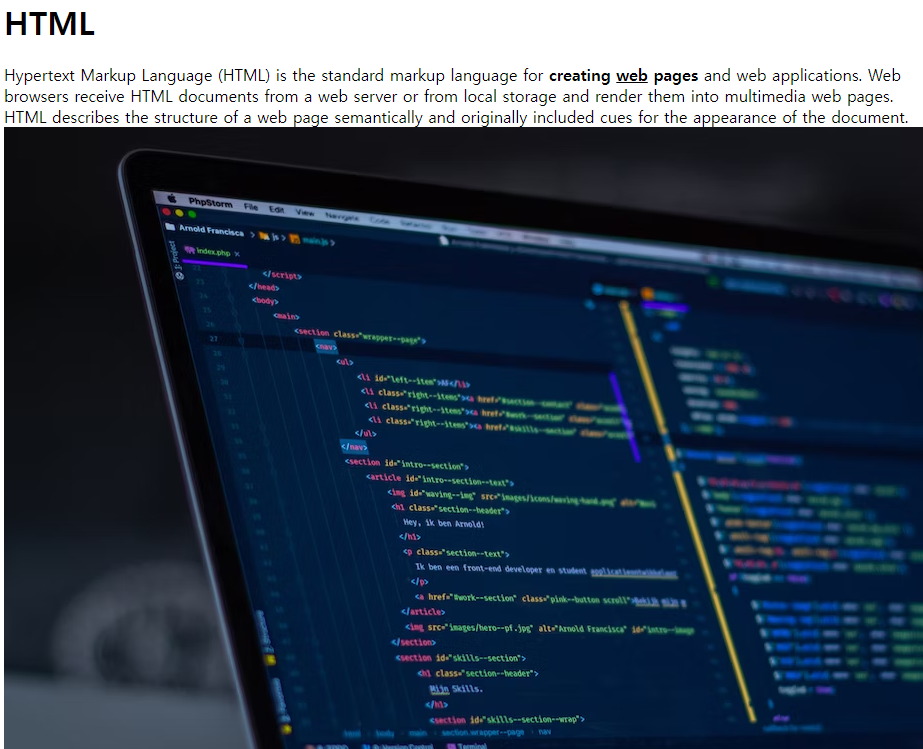 </p><p style="margin-top:40px;">HTML elements are the building blocks of HTML pages. With HTML constructs, images and other objects, such as interactive forms, may be embedded into the rendered page. It provides a means to create structured documents by denoting structural semantics for text such as headings, paragraphs, lists, links, quotes and other items. HTML elements are delineated by tags, written using angle brackets.</p>