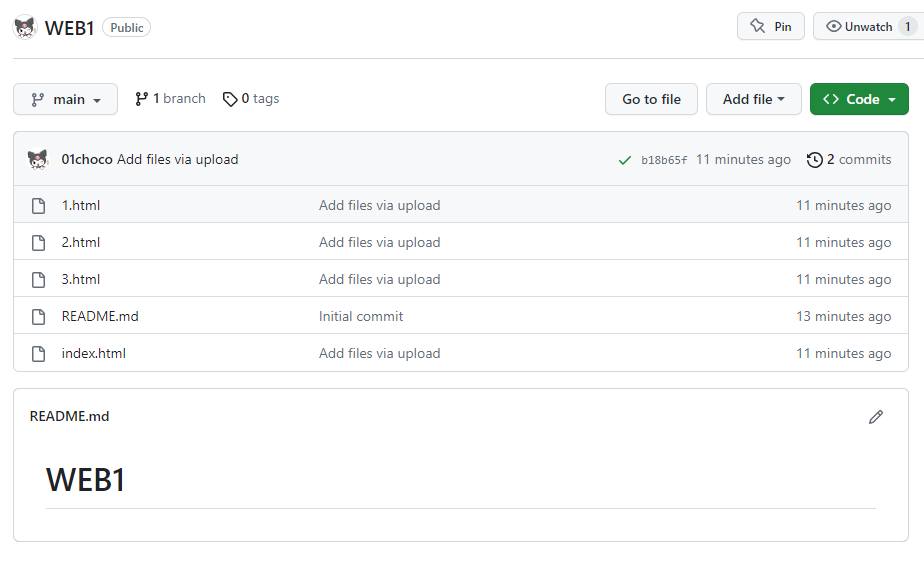 완성된 깃허브 페이지 링크 : https://01choco.github.io/WEB1/