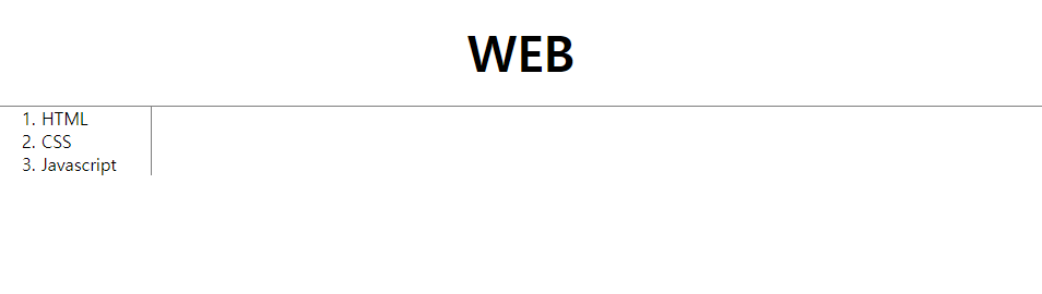 <ol> 은 블록 레벨 엘레먼트이기 때문에 오른쪽 맨 끝에 선이 생겼다. 그러므로 너비를 지정해 주자.