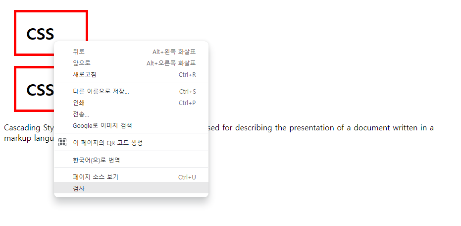 이와 같이 적용된 CSS를 확인할 수 있다.